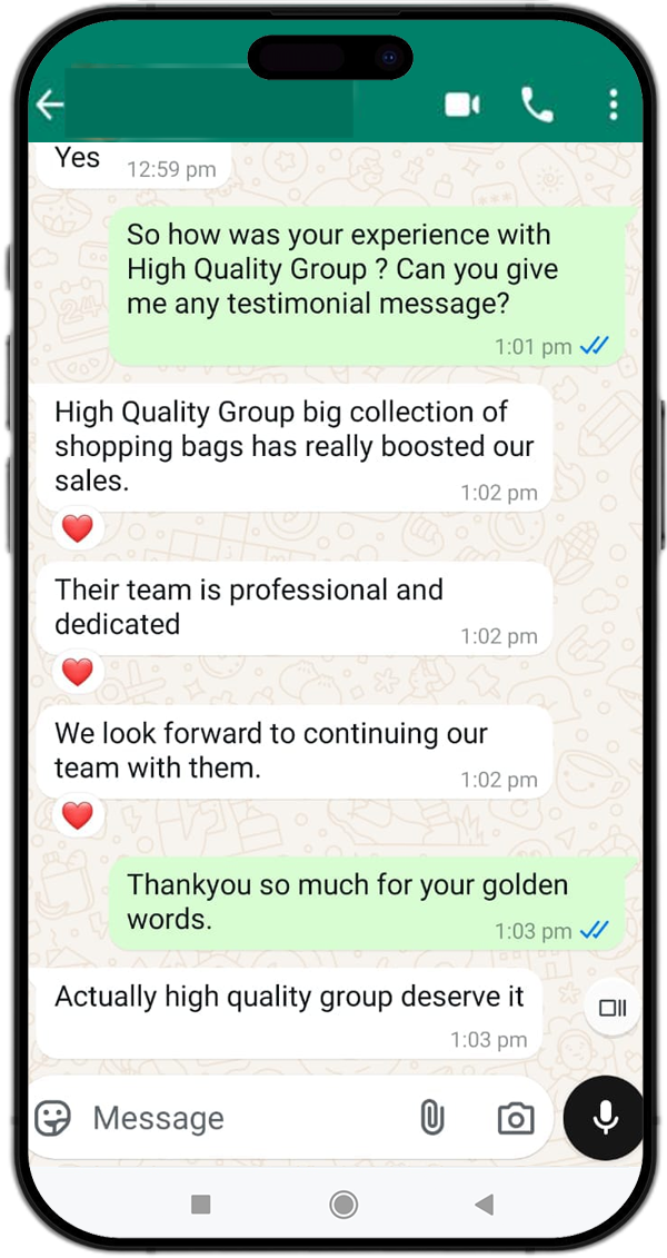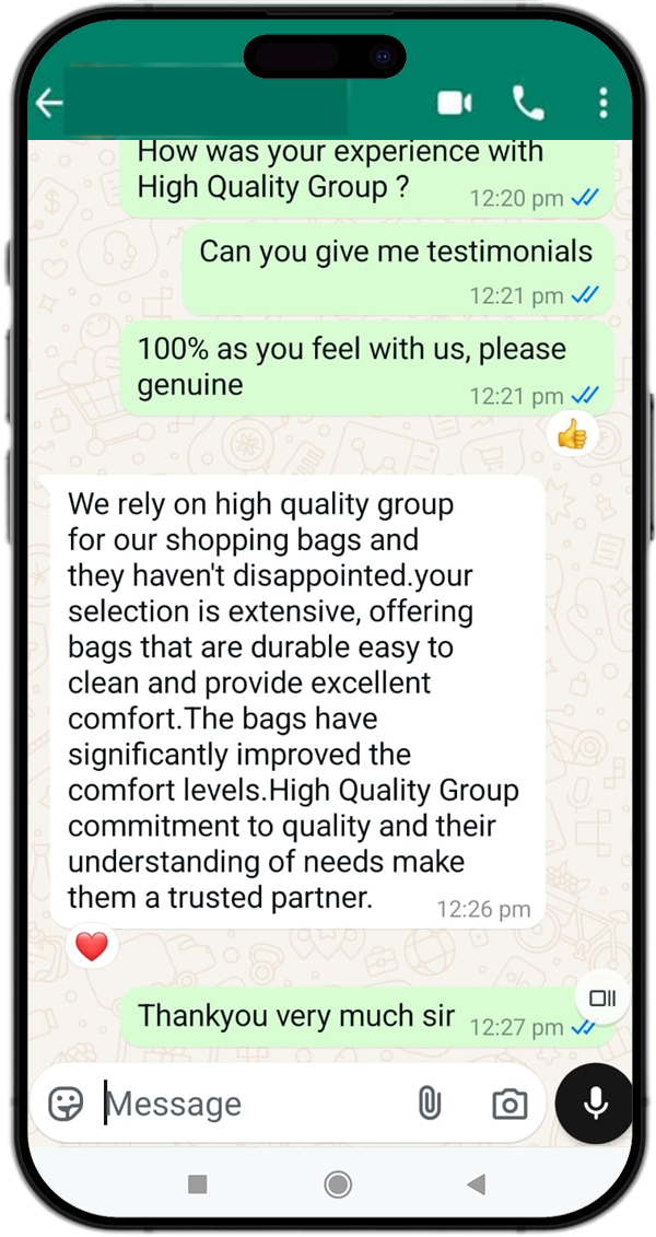 Highquality Overseas is a leading manufacturer and exporter of premium-quality shopping bags, offering eco-friendly and durable solutions for businesses worldwide. Based on innovation and sustainability, we provide a wide range of customizable bags, ensuring superior quality, strength, and style.